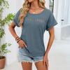 Women's Fashionable Color Round Neck Lace Patchwork Loose Short Sleeved T-shirt Top
