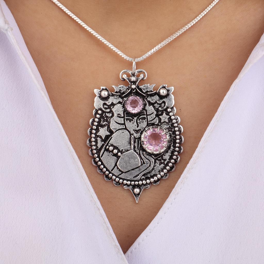 Morganite Gemstone 925 Sterling Silver Two-Stone Pendant 1.9" Designer Jewelry For Anniversary Gift CP-44-8