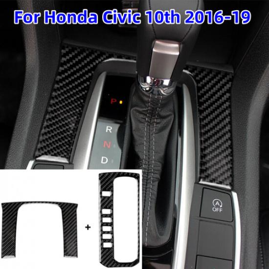 2x Carbon Fiber Gear Shift Panel Decor Trim Cover For Honda Civic 10th 2016-