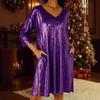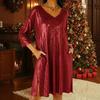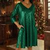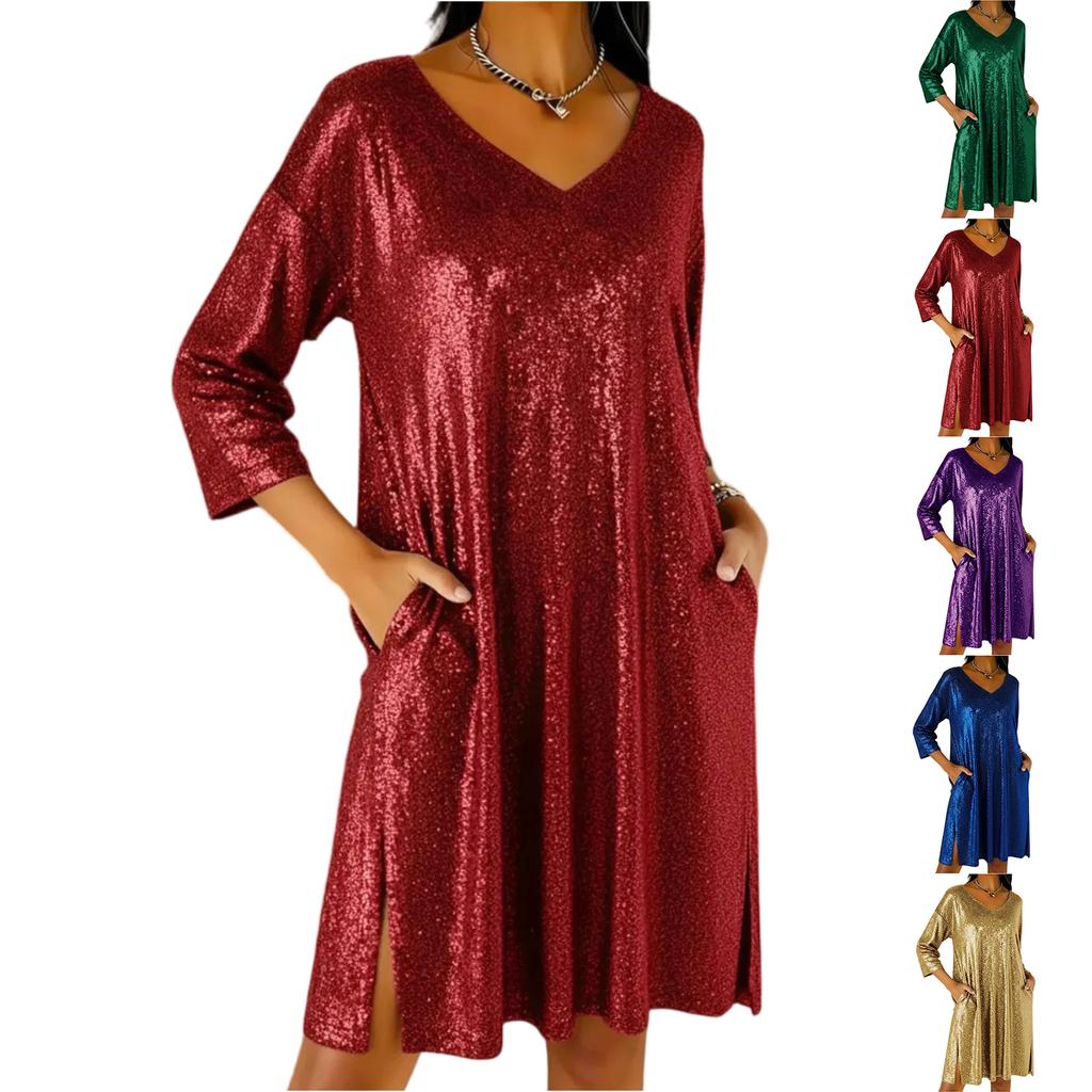 Modisches lockeres V-Ausschnitt-Kleid mit Dreiviertelärm und seitlichen Schlitzen am Saum für Damen.
