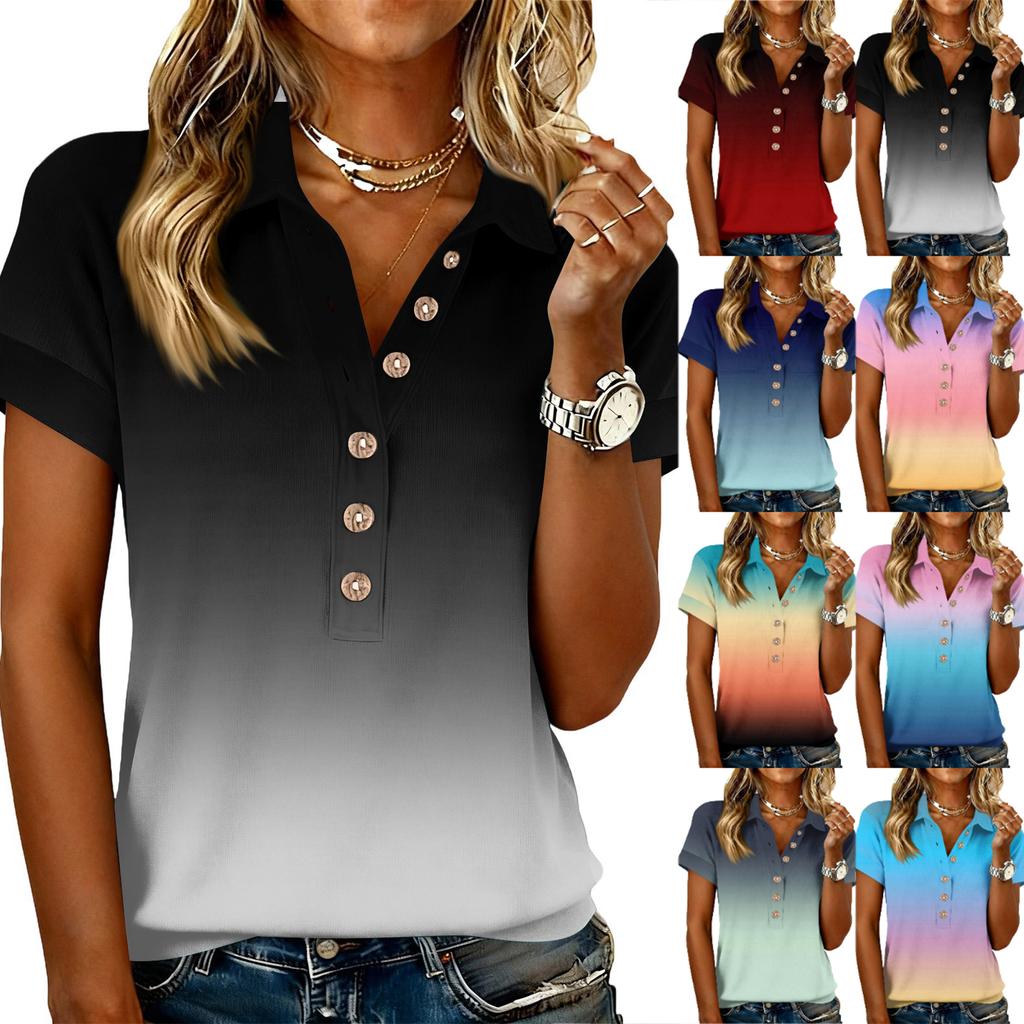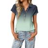 Damen modisches und lässiges Sommer V-Ausschnitt Patchwork Kurzarm Farbverlauf Top