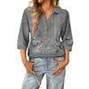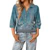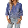Damen modisches und lässiges Sommer V-Ausschnitt Patchwork Dreiviertelarm Retro Oberteil