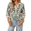 Damen modisches und lässiges Sommer V-Ausschnitt Patchwork Dreiviertelarm Retro Oberteil