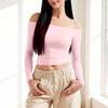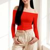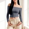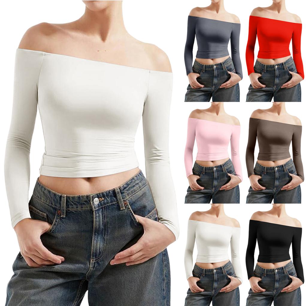Damen Farbe Sexy Schulterfrei Langarm Figurbetontes Oberteil