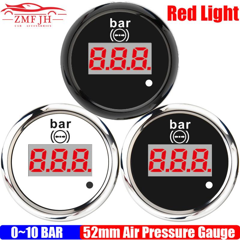 Rückbeleuchteter 52mm Luftdruckmesser mit Warnanzeige Digitaler Luftdruckmesser für Auto Auto Boot Marine Yacht DC12V24V