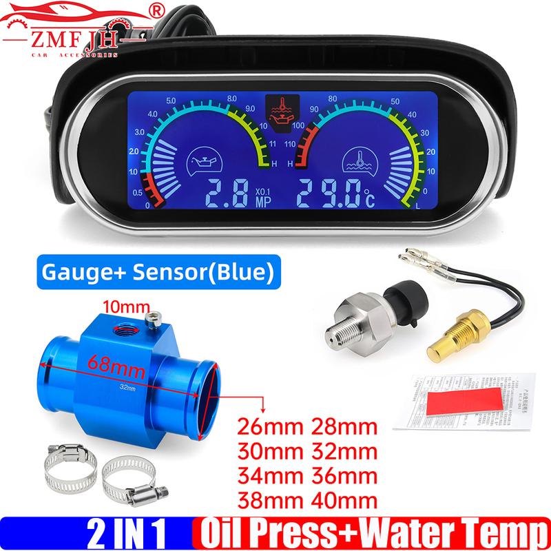 ZMFJH 2IN1 Digital Water Temperature+Oil Pressure Meter with Sensor 10mm Temp Joint Pipe Sensor Hose Adapter for Car Truck 9-32V