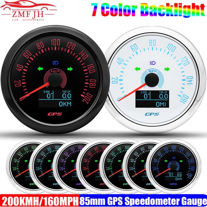 7 Color 85mm GPS Speedometer Gauge with Antenna 200KMH,160MPH Speed Meter COG TRIP ODO Turn Light Car Boat Yacht 12V24V