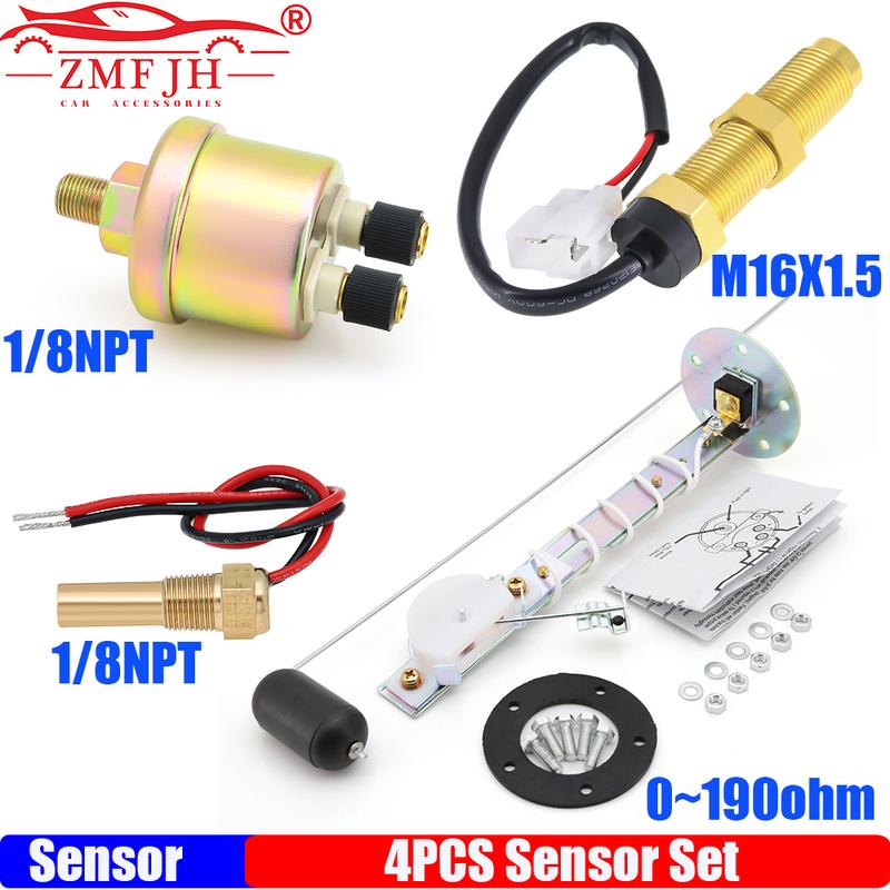 ZMFJH 4PCS Sensor Set 0-190 Ohm Fuel Level Sensor 0-10Bar Oil Pressure Sensor 1/8NPT Water Temperature Sensor Tacho Sensor M16