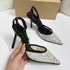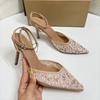 Luxury Pearls Sequined Mesh Women Pumps Sexy Ankle Strap Pointed Toe Wedding Evening Party High Heels Shoes for Ladies