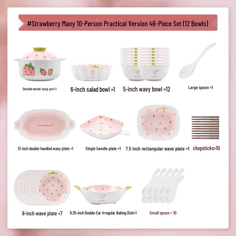Kangmo Cute Strawberry Ceramic 46-Piece Dinnerware Set