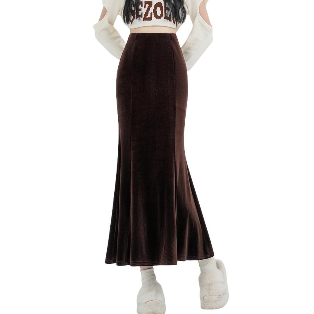 Meerjungfrau Midi Elastisch Eng Einfarbig Perfekt für Herbst [Ishihara liacceai] Rock, Samt, Länge, Herbst/Winter, Lang, Taille, Rock, Stretch, Dünn,
