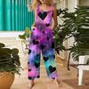 Damen Herzförmiger bedruckter lässiger lockerer Retro-Overall Baumwolle und Leinen Einteiler Hose