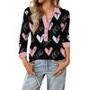 Damen Retro Street Lässiger V-Ausschnitt Langarm Knopf Valentinstag Herz Pullover Top