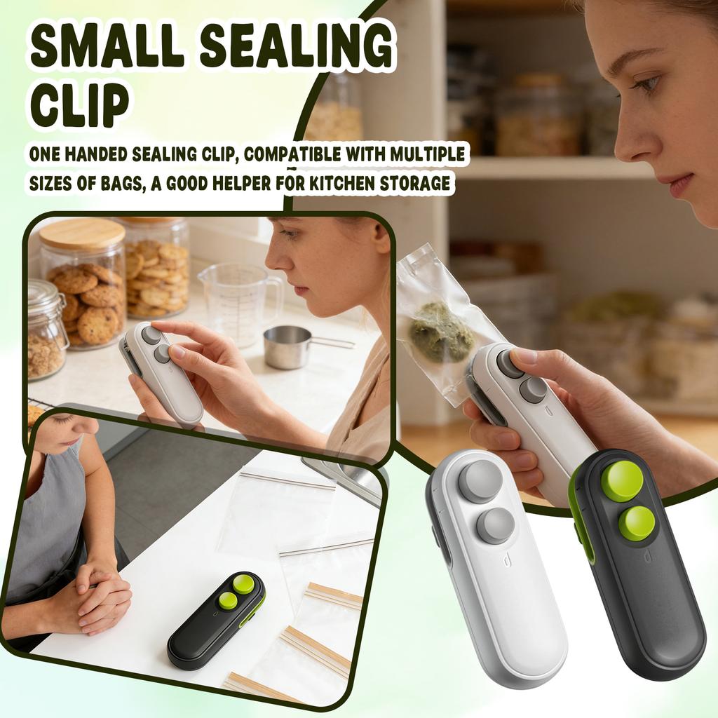 Taschenversiegeler für Snacks, Wiederaufladbarer Taschenverschließer, 2 in 1 Versiegeln und Schneiden, Hält Lebensmittel frisch, Taschenverschließer