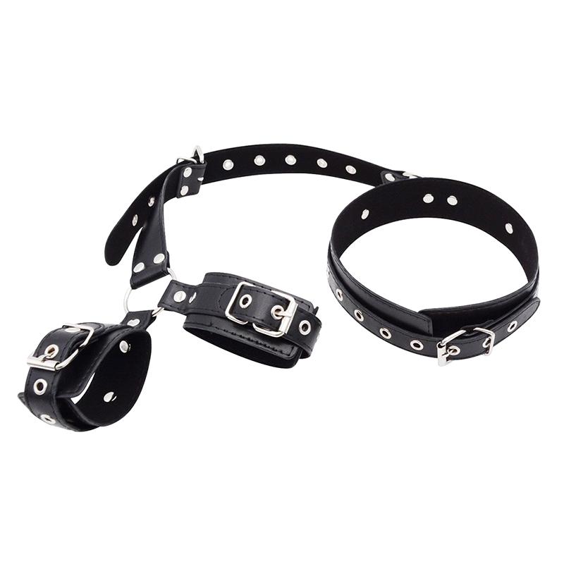 Adjustable Neck to Wrist Restraints Kit Sexy Women's behind Back Handcuffs Collar for Couples Bondage Set with Sex Game Tool