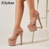 Eilyken Sommer Sexy Schmaler Riemen Damen Sandalen Extrem Hohe Absätze Mode Peep Toe Party Plateau Pumps Stripper Schuhe