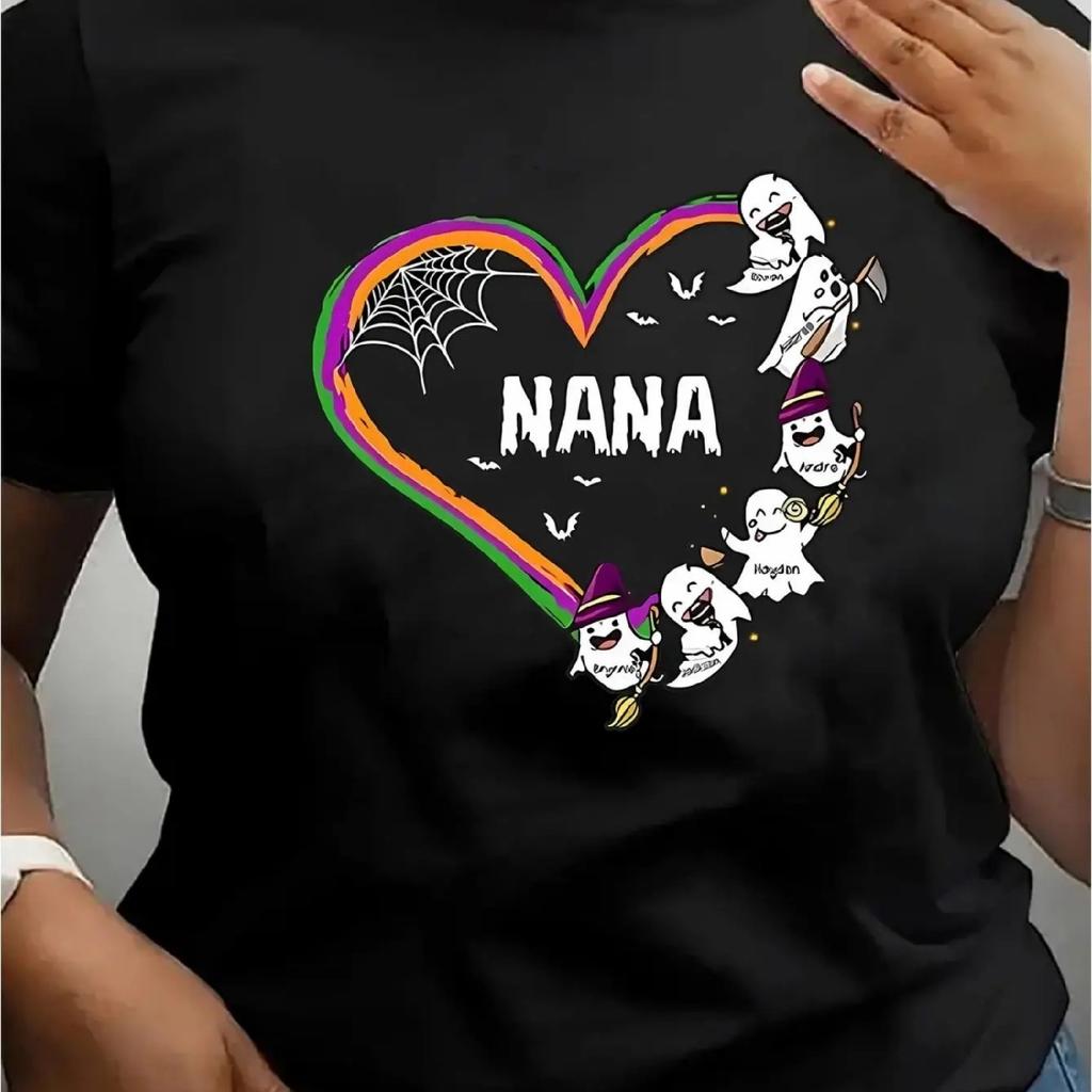 1pc Halloween Nana Graphic Tee, Women'S Casual Crew Neck Short Sleeve T-Shirt, Knit Fabric with Medium Stretch, All-Season Fashi