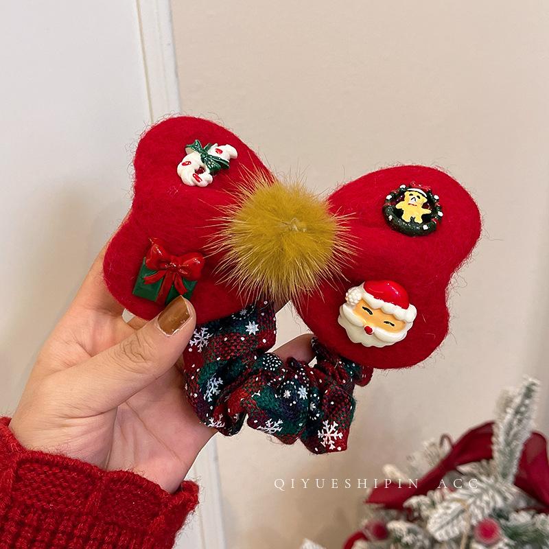 Christmas hairball bow hair band light luxury sweet daily versatile ponytail hair rope design sense niche headrope women