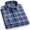 Neue karierte Hemden für Herren, 100 % Baumwolle, gebürsteter Stoff, lange Ärmel, klassisches Karo-Design, gestreift, Business-Casual, mit Tasche, normale Passform