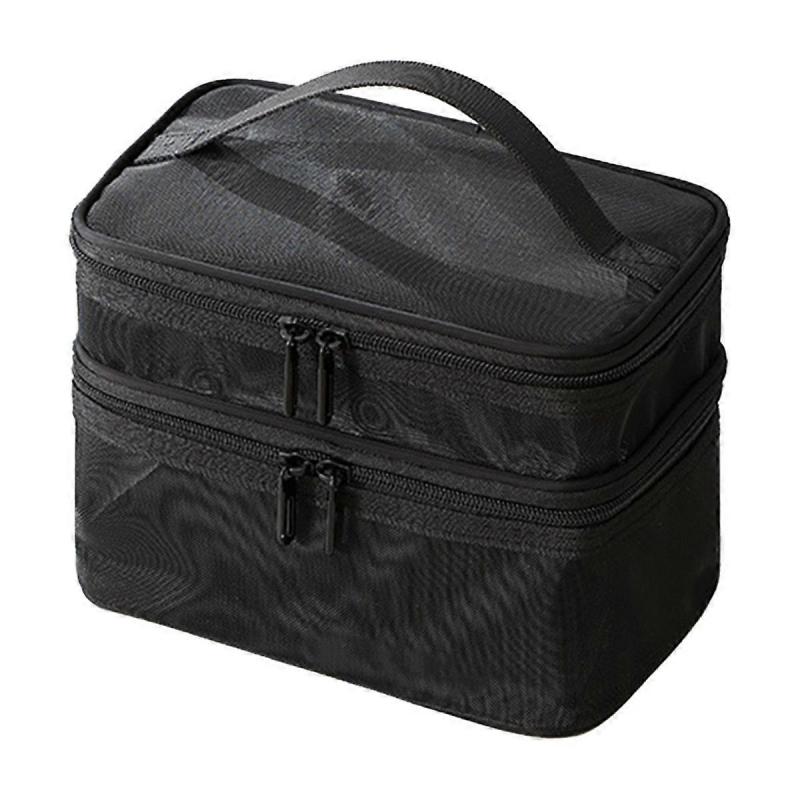 Doppellagige Kosmetiktasche Einfache Klassifizierung Große Kapazität Netz-Kosmetiktasche mit stabilem Griff für Reisen Doppellagig Schwarz