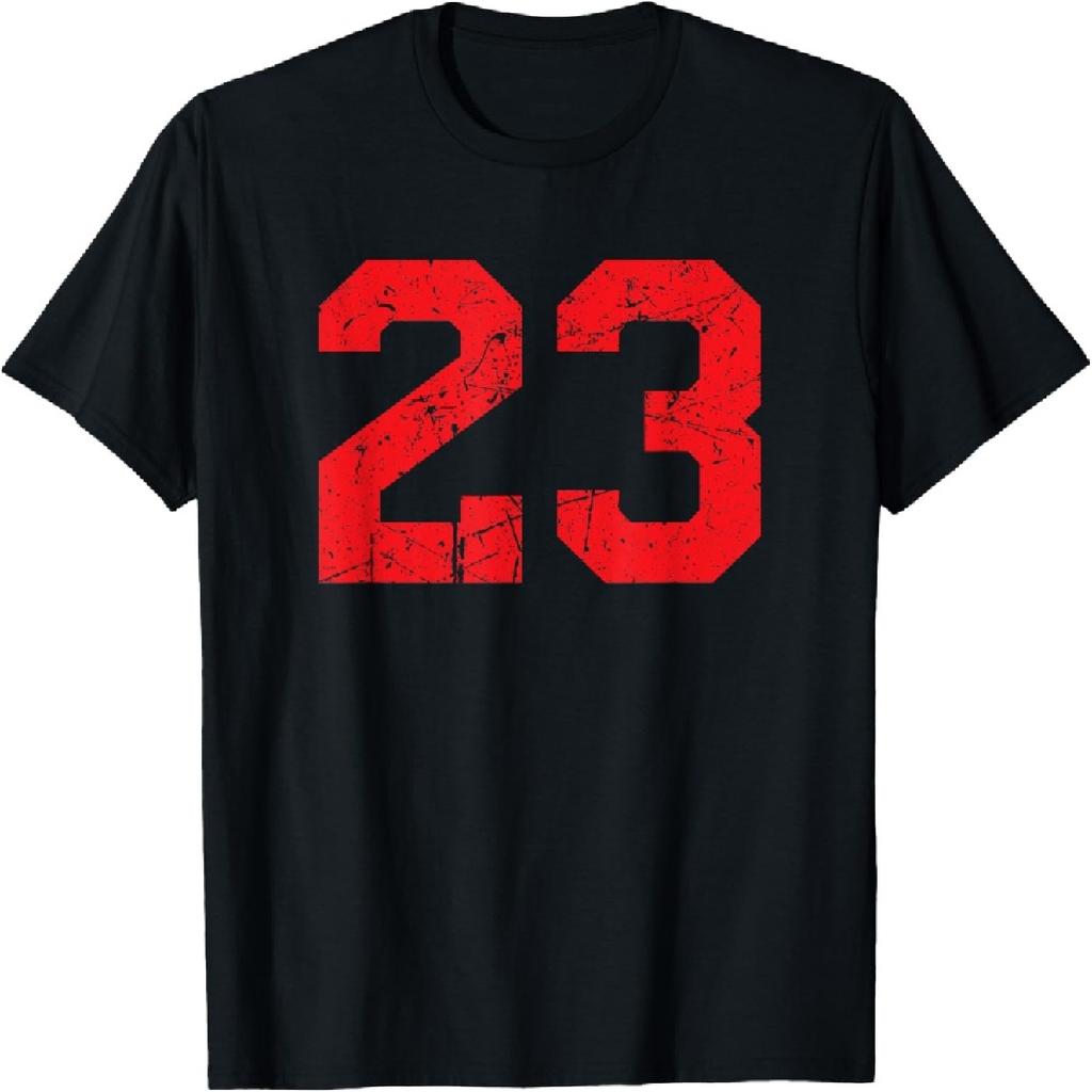 Number #23 Red Distressed Varsity Number T-Shirt