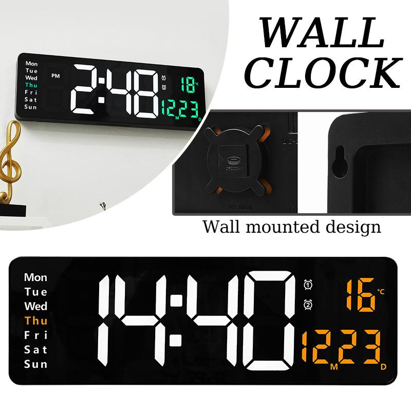 22,8CM Digitale Wanduhr Große LED Wecker Datum Woche Temperatur Duale Alarme Anzeige Helligkeitseinstellung Heimdekoration