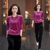 Gold Velvet Fashionable Middle-aged Mother's Wear Sports Suit for Women Spring and Autumn Long-sleeved Casual Two-piece Set