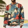Japanische Kapuzenpullover für Herren Kapuzenfreies Sweatshirt Ukiyoe Grafik-T-Shirts 3D-Druck Übergroße Herrenbekleidung Oberteile Pullover Sweatshirt