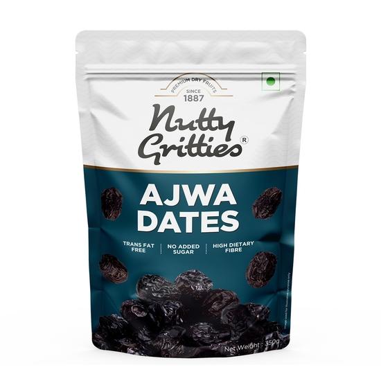 Nutty Gritties Premium Ajwa Datteln 350g, Khajur | Khajoor | Saftige & Leckere Khajoor, Khajur | Natürlich Süß | Sofortige Energie | Wiederverschließbarer Beutel,