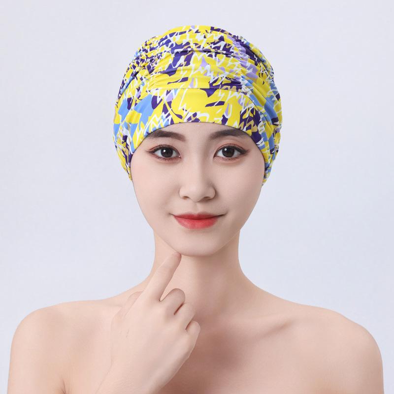 Damen Bunte Bedruckte Bandana Schwimmkappe Wasserdichtes Elastisches Material Langhaarfreundlich Schwimmen am Meer Strandzubehör