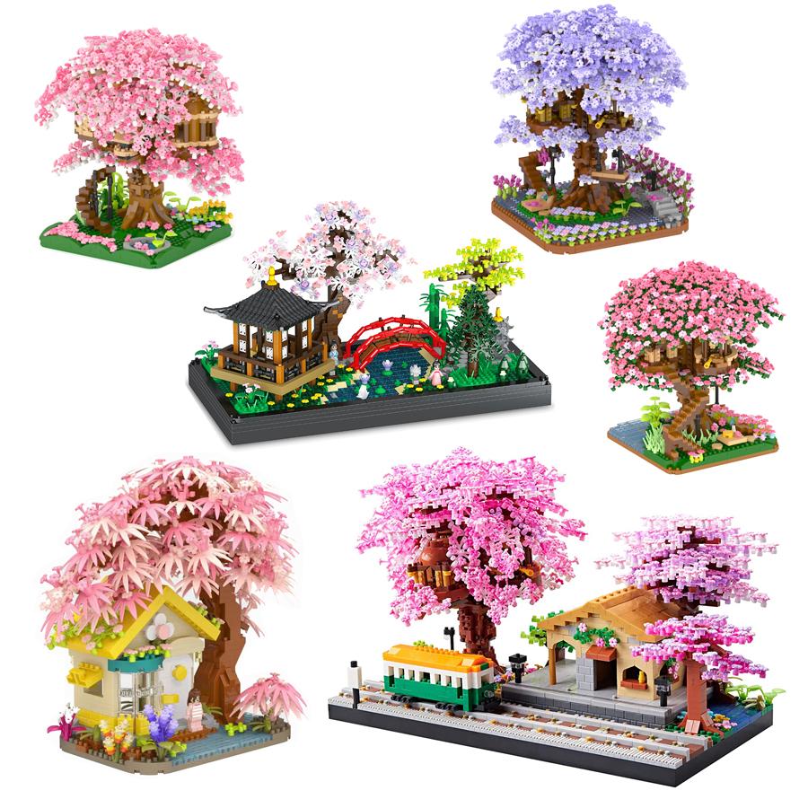 Kirschblütenhaus Bausteine Kirschblüten Straßenansicht Mini-Bausteine Mikro-Bausteine Kinderspielzeug 3D-Modelle Kreative Ornamente