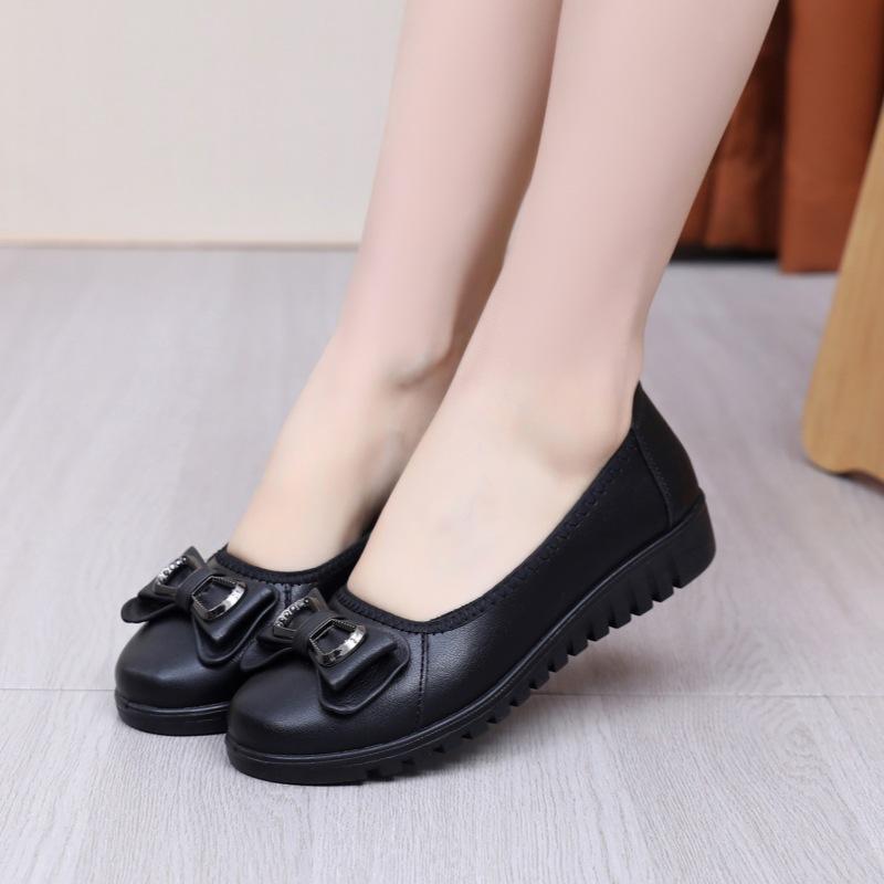 2026 Frühling Sommer Damen Ballerinas Reines Schwarz Weich Bequem Mutter Schuhe Slipper Marke Damen Tägliche Laufschuhe Übergröße 42