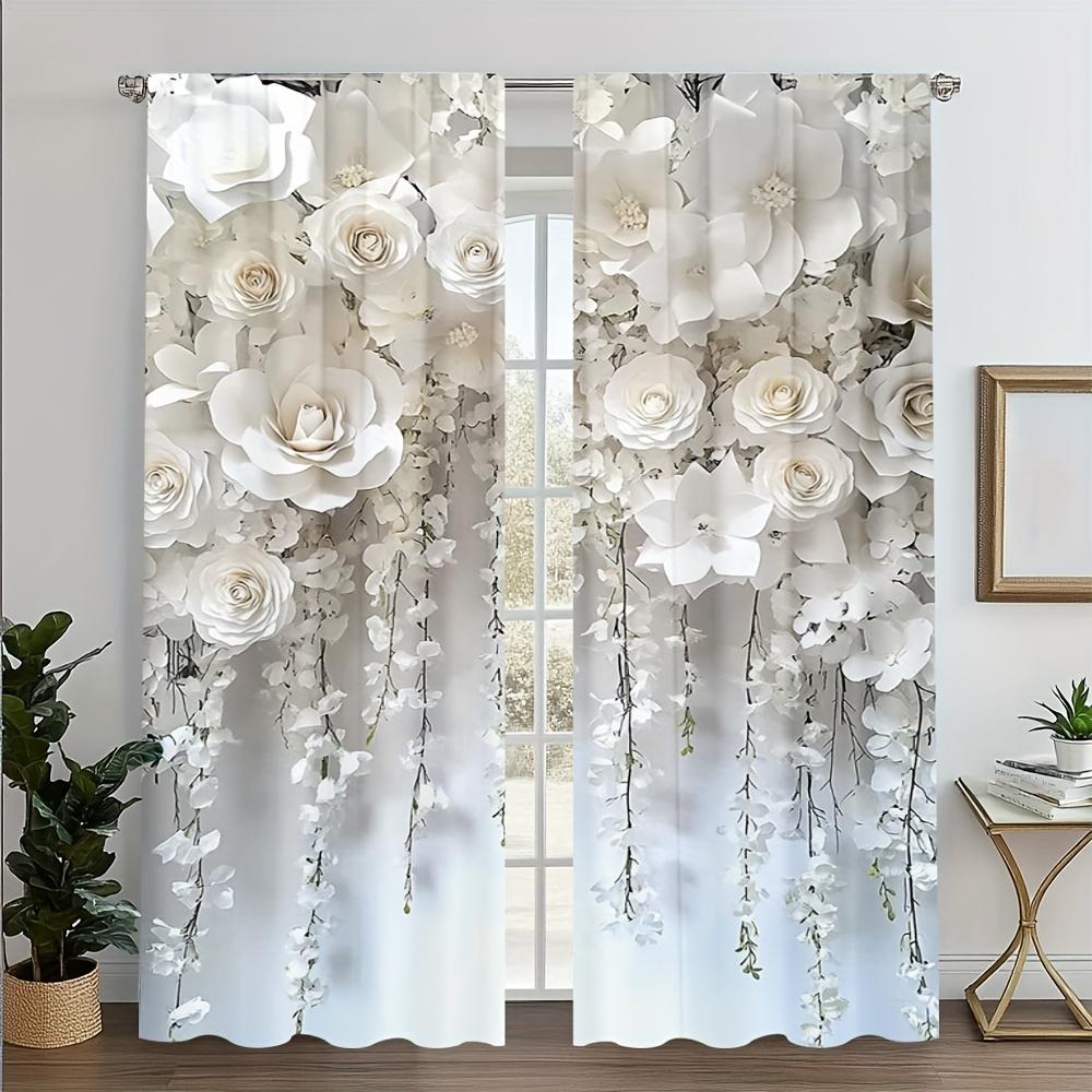 2 Stück Elegante Weiße Blumenmuster-Gardinen aus transparentem Polyester – für Wohnzimmer, Schlafzimmer, Ferienhaus, Café, Küche & Büro