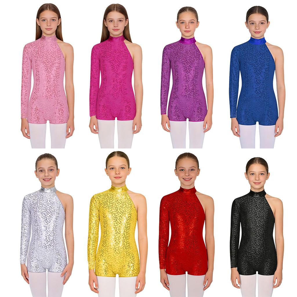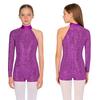 Kinder Mädchen Single Lange Ärmel Glänzende Pailletten Tanz Gymnastik Kurzen Overall Bühne Leistung Kleidung