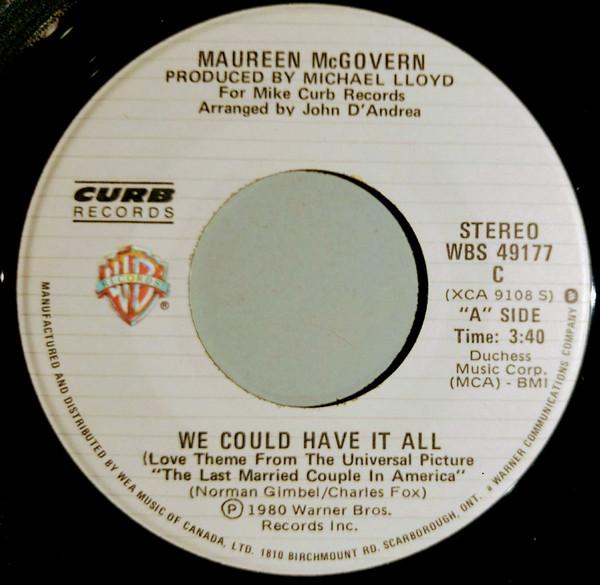7inch Record MAUREEN MCGOVERN We Could Have It All WBS49177 Warner Bros. Re 1980 Canada Pop Used