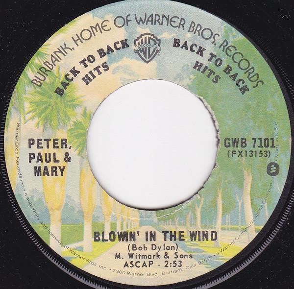 7inch Record PETER PAUL MARY Blowin In The Wind Puff The Mag GWB7101 Warner Bros. Re US Rock Used