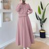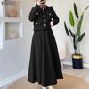 ZANZEA Damen Langarmbluse und Lange Röcke Lässige Zweiteiler Anzugsets