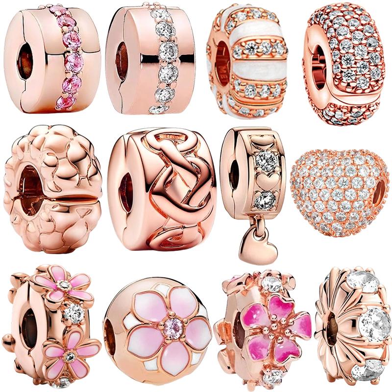 Funkelnde Roségold Clip-Charms Perlen Passend für Original Schlangen-Kupfer-Armband Halskette Perlen Für DIY Schmuck Damen Geschenk