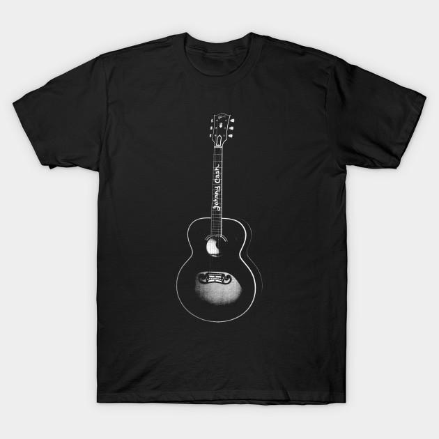 Men Black Print T-shirt Johnny Cash Guitar Signature No-Cut Transfer Paper Print Cotton Tshirt