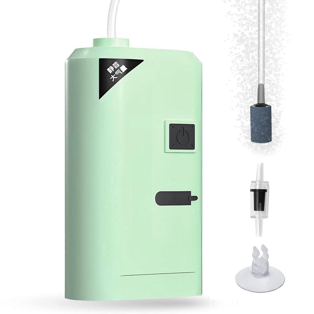 Fischerei-Luftpumpe, USB-wiederaufladbar, Eingebaute Batterie, 35dB leise, Kompakt, Tragbare Sauerstoffpumpe (Grün)