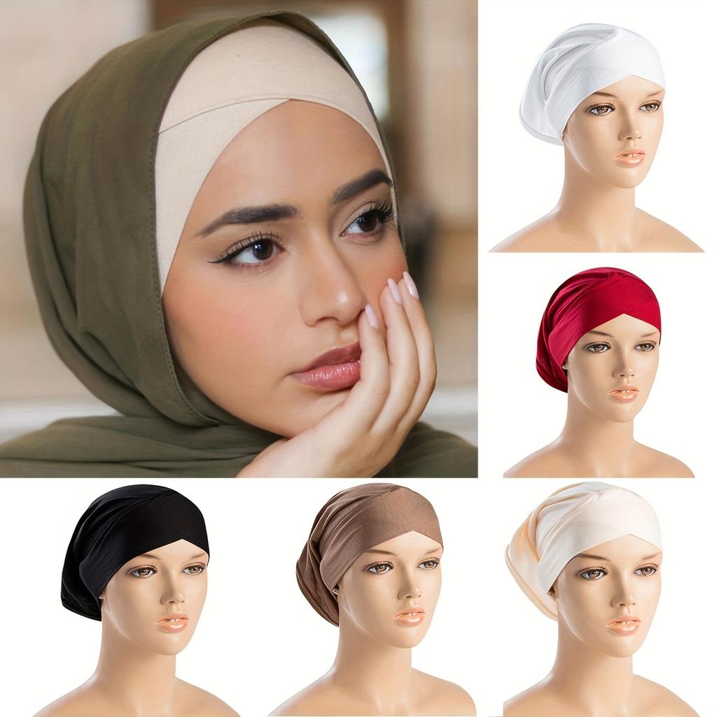 Soft Elastic Instant Cross Hijab Undercap For Muslim Woman Solid Color Underscarf Bonnets Casual Sports Inner Caps Free Size