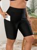 2026 High-Waist Badeshorts in Übergröße, Schwarz, mit Taschen - Europäischer & Amerikanischer Stil