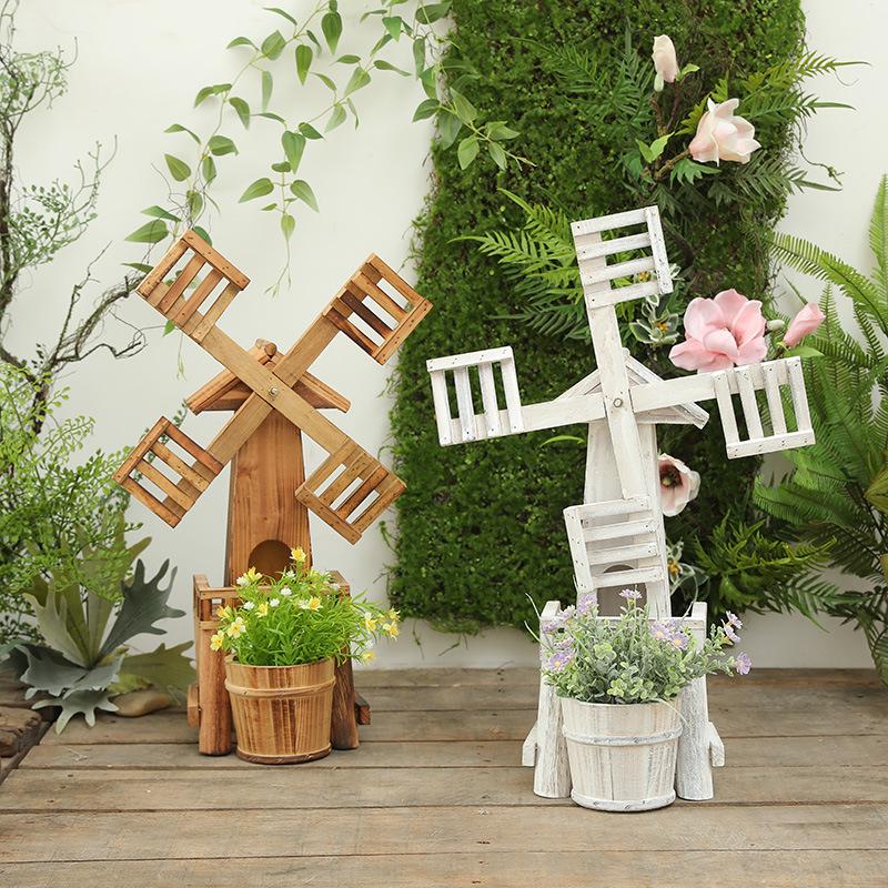 Neid Porzellan Windmühlen Ornament: Massivholz Miniaturlandschaft Gartendekoration - Kreative Waldserie für Kindergarten und Hofgestaltung