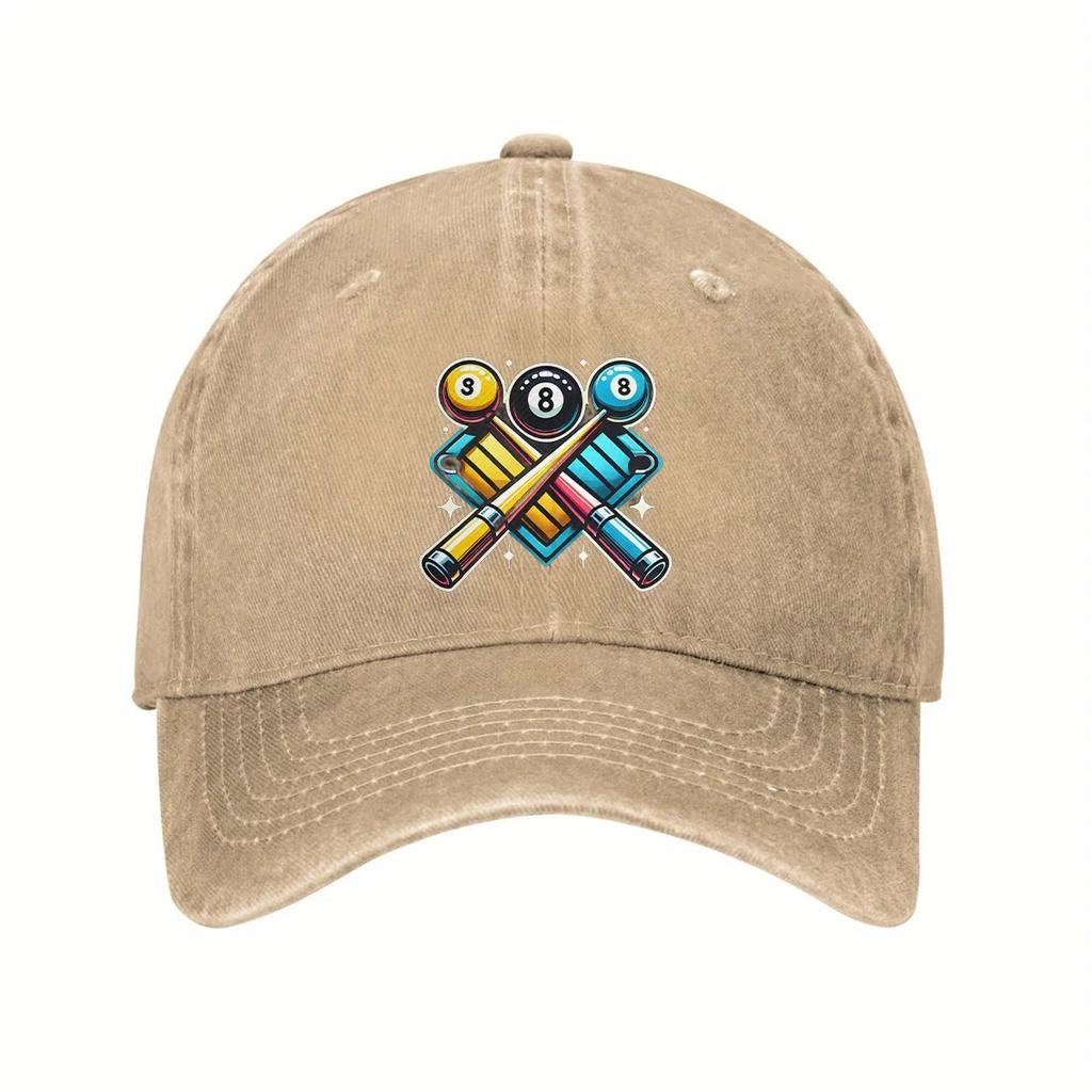 1pc Unisex 1960s Billiard Pool Cues Design Cotton Baseball Cap, 100% Cotton, Adjustable Curved Brim, Hand Wash, Sun Protection,