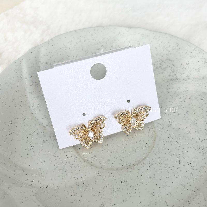 Herbst/Winter Zirkon Schmetterling Ohrstecker mit Emaille Blumen - Elegant, Vielseitig und Luxuriös für Damen