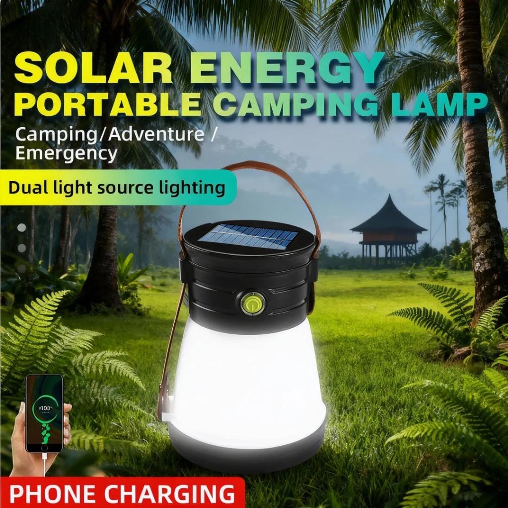 Solar Tent Lantern with Power Bank Function, Long Lasting,COB+LED Dual Light,USB Backup,Perfect for Camping,Hiking,Power Outage
