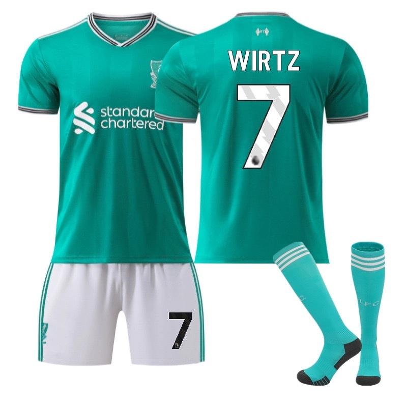 Jugendliche Kinder Erwachsene Benutzerdefinierter Name Fußballtrikots 25/26 Liverpool Zweites Auswärtstrikot #7 Wirtz Sport Trainings-Trikot-Set mit Socken