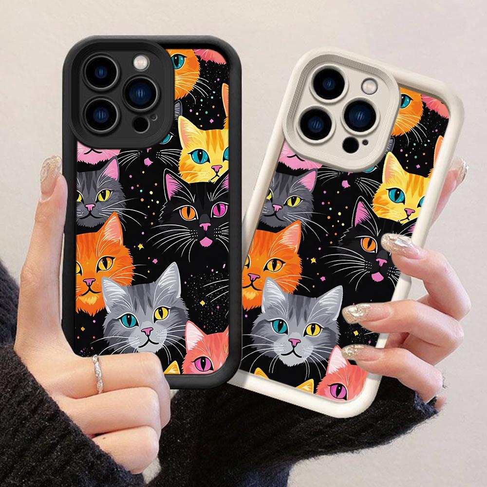 JT174 Bunte Katzen für iPhone 17 16 15 14 Pro Max Samsung S26 S25 Ultra A17 A16 A07 A56 A15 A06 A14 Xiaomi 15T Redmi 15c 14C Note 13 14 Weiche TPU-Hülle