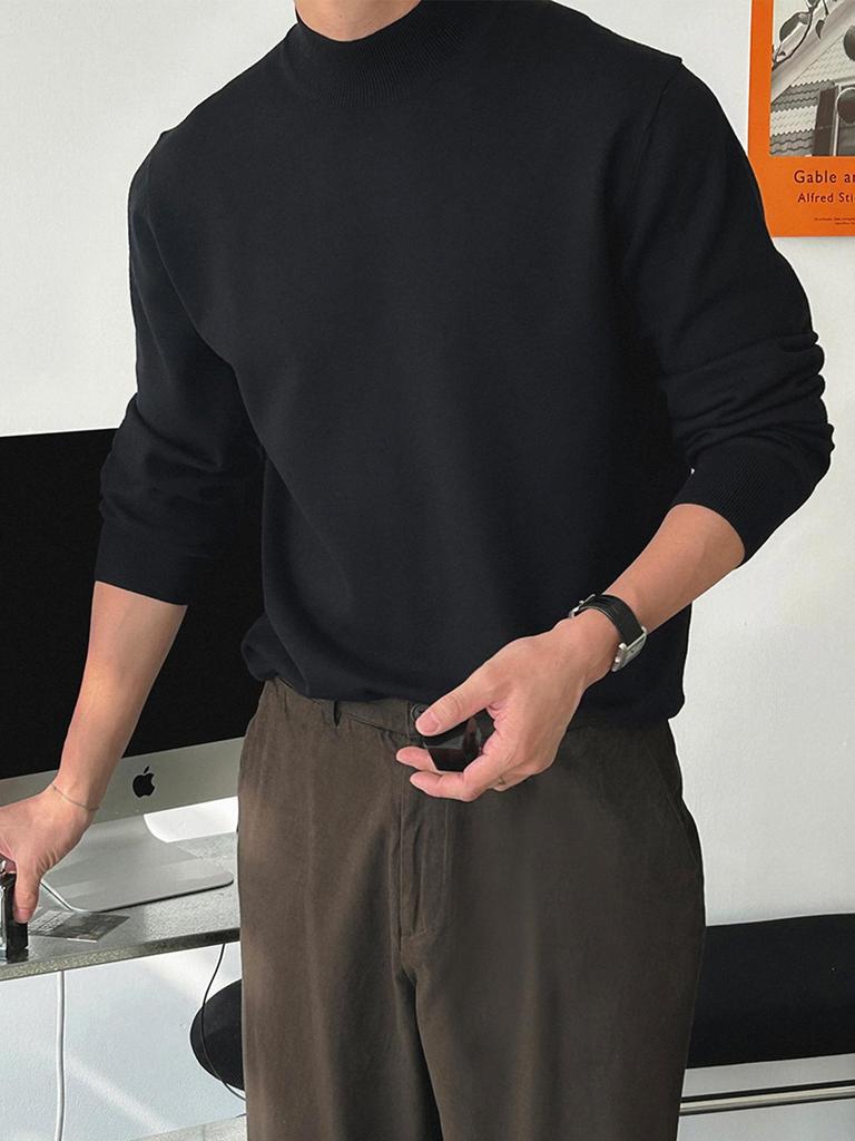 Herrenschwarzer Rollkragenpullover im Hongkong-Stil, Slim Fit, einfarbig, warme Strickware für Herbst/Winter