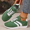 Damen Klassische Mode-Sneaker - Grüne Freizeit-Sneaker mit weißen Schnürsenkeln, Bequeme Slipper für alle Jahreszeiten, Lässiges Schuhwerk Geometrisch